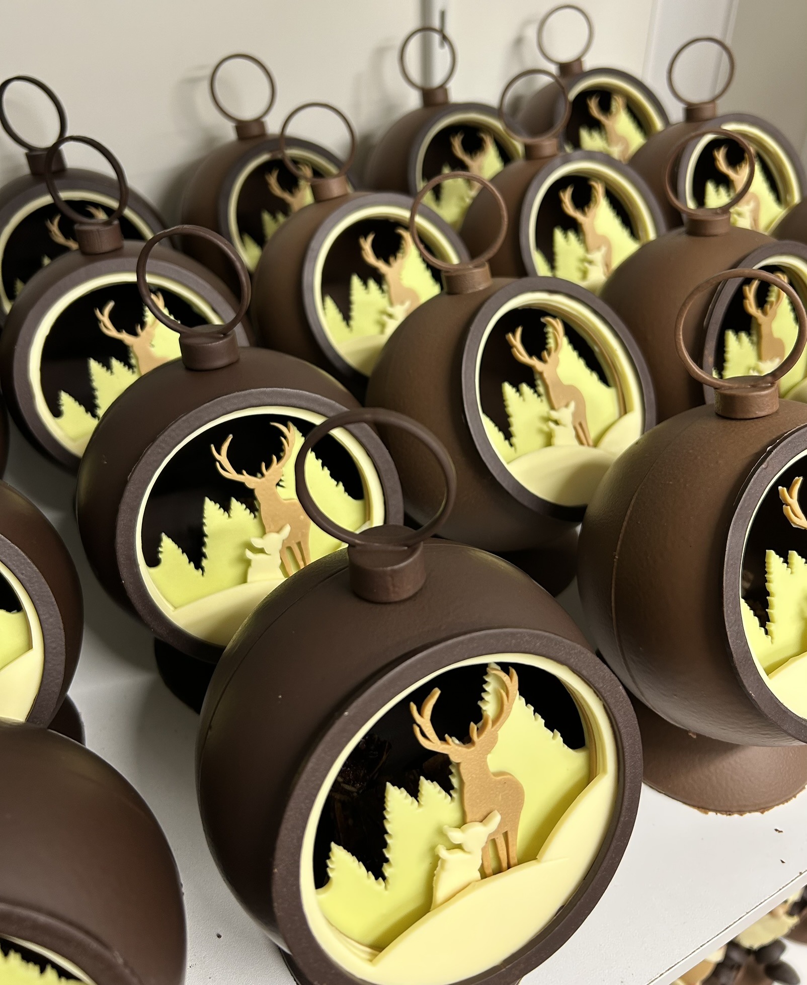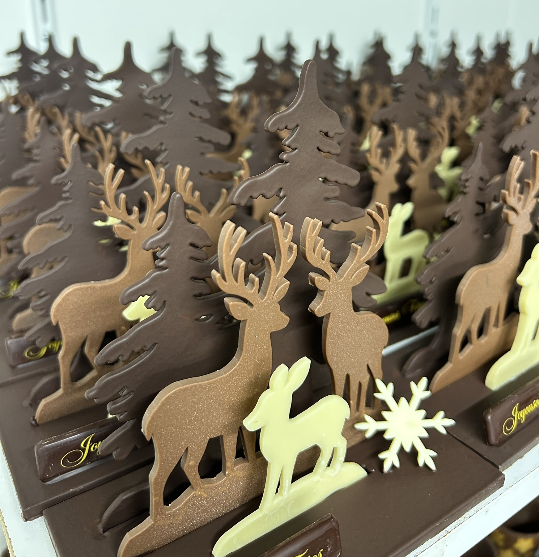 Découvrez nos délicieux chocolats tels que les bonbons de chocolat, nos montages ainsi que nos spécialités